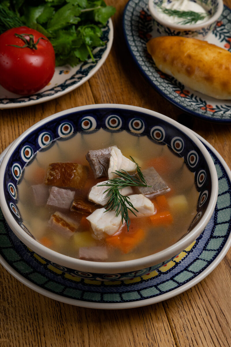 В меню: карпаччо из баклажана с хумусом, нижегородская уха с сомом и ресстегаем, а на десерт — «Картошка» с белым шоколадом и орехами.